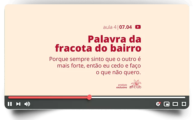 Um espaço privado e seguro, de formação, crescimento e espiritualidade feminina. Imagine como seria um lugar com um único propósito: o seu fortalecimento e crescimento. Esse lugar é o ZFClub, agora toque no botão acima.
